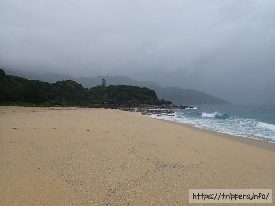 対向車とほぼすれ違う事ないまま林道を終え、いなか浜にやって来ました。この時期、深夜になるとウミガメの産卵が見られるようです。見てみたいけれど、この天気だと難しそう。昔は卵をよく食べていた文化があり、採取するのは子供の仕事だったようです。