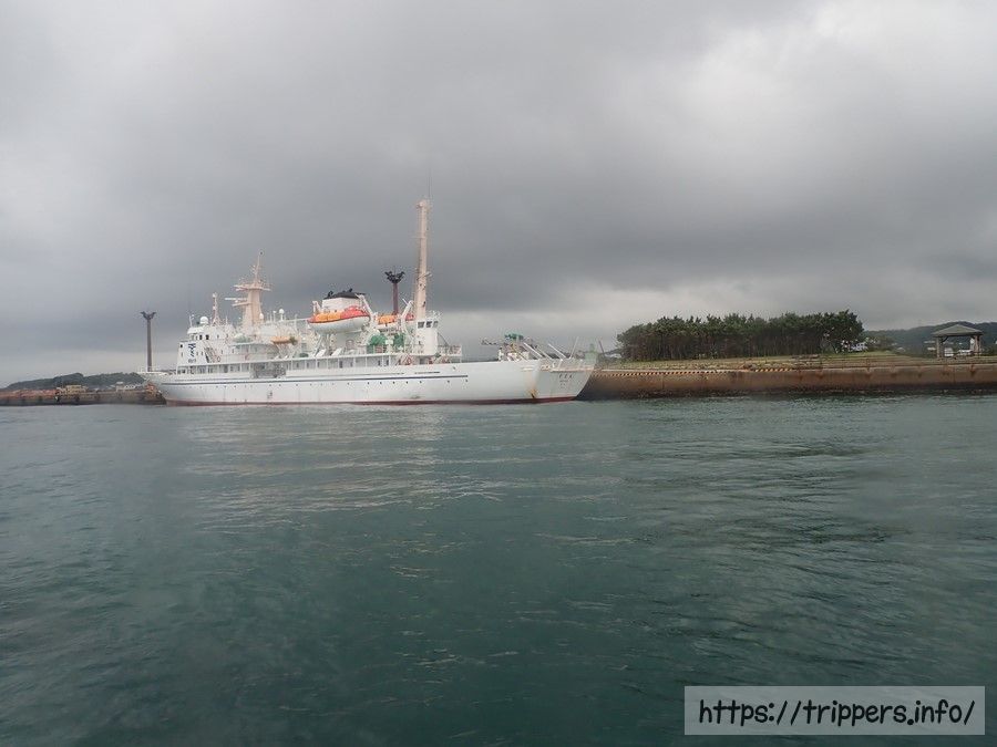 船は種子島に立ち寄ってから鹿児島本港南埠頭に着きます。