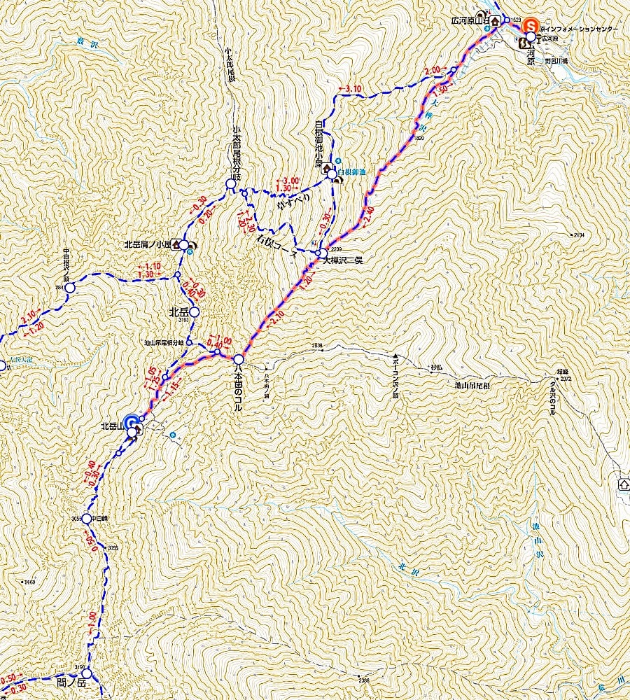 広河原から北岳山荘までは距離は6km行きませんが、標高差は1,500mはあります。