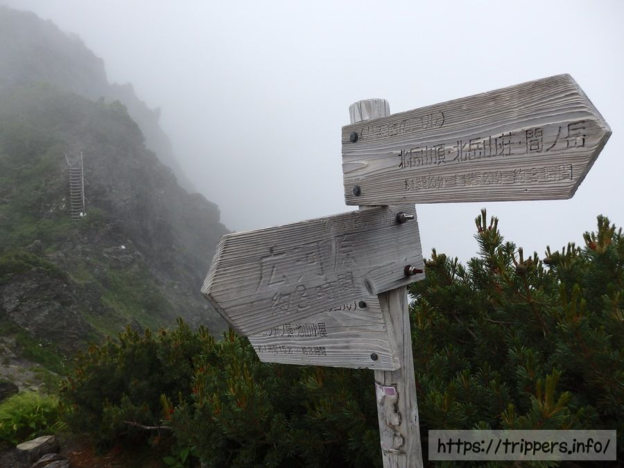 朝ごはんを食べていると八本歯のコルから雪渓を通って来た一人の女性がこれから登る男性グループに雪渓はガスってて視界が悪く迷子になるからとても危険だと話しているのが聞こえました。