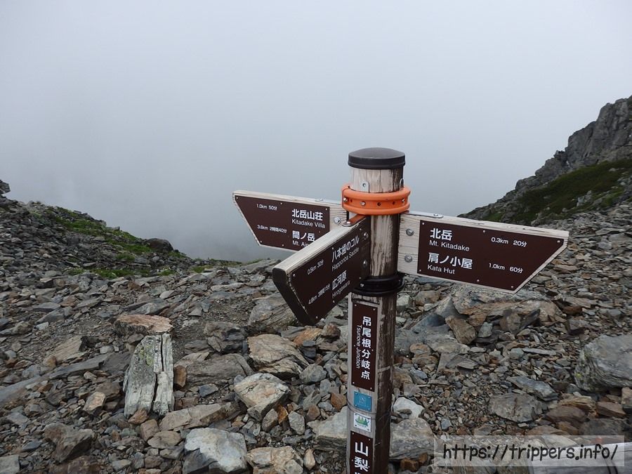 池山吊尾根分岐まで戻ってきました。北岳山荘へ続くこの稜線は北岳と間ノ岳を結ぶ標高3,000mにもなる稜線です。