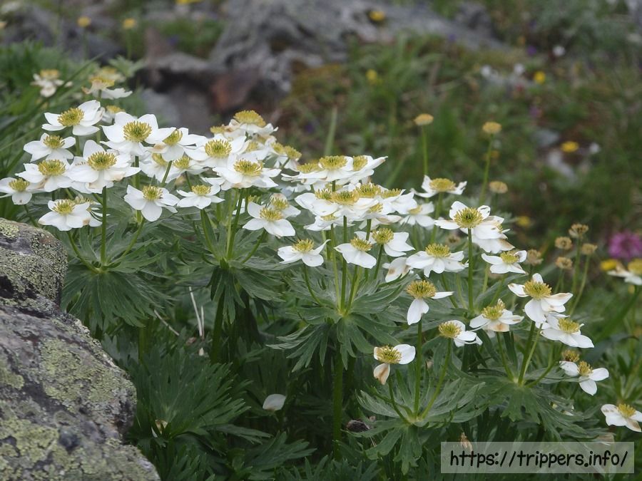 ハクサンイチゲが咲いています。北岳固有種であるキタダケソウに似ている花ですが、キタダケソウは梅雨の時期なので今は咲き終えて見る事は出来ません。
