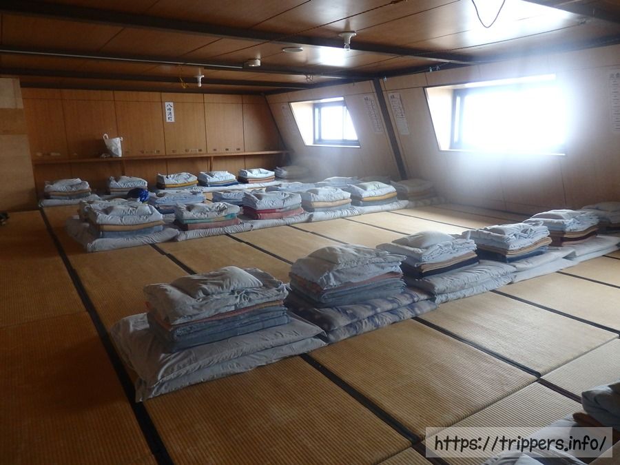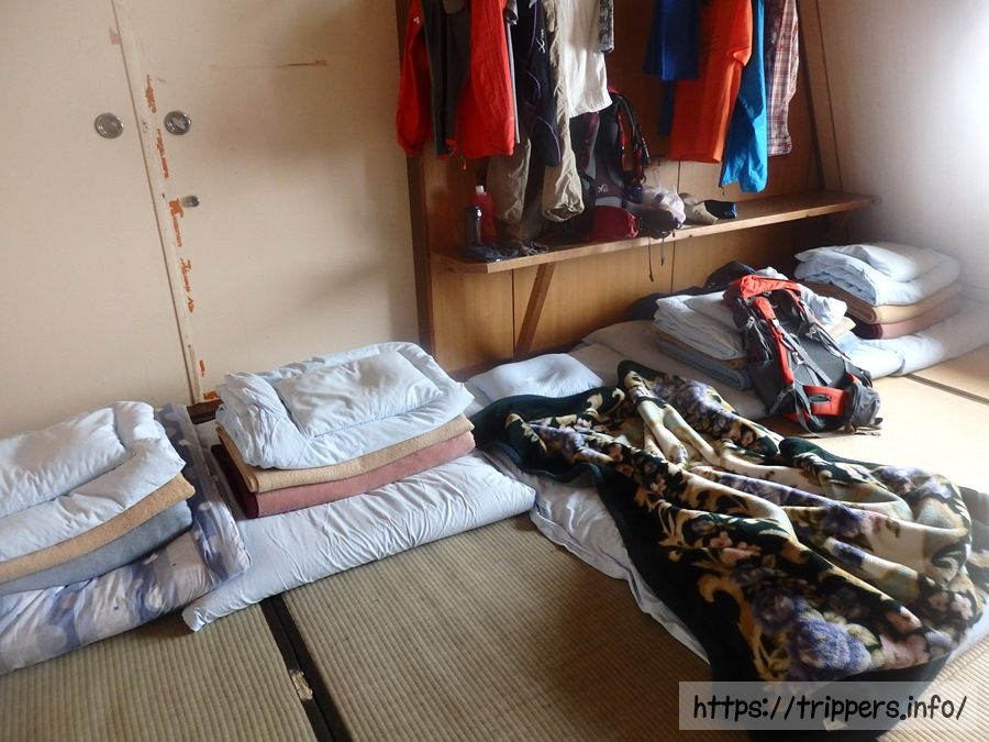 雨が強かったので山荘に戻りました。10人部屋に8人が宿泊です。