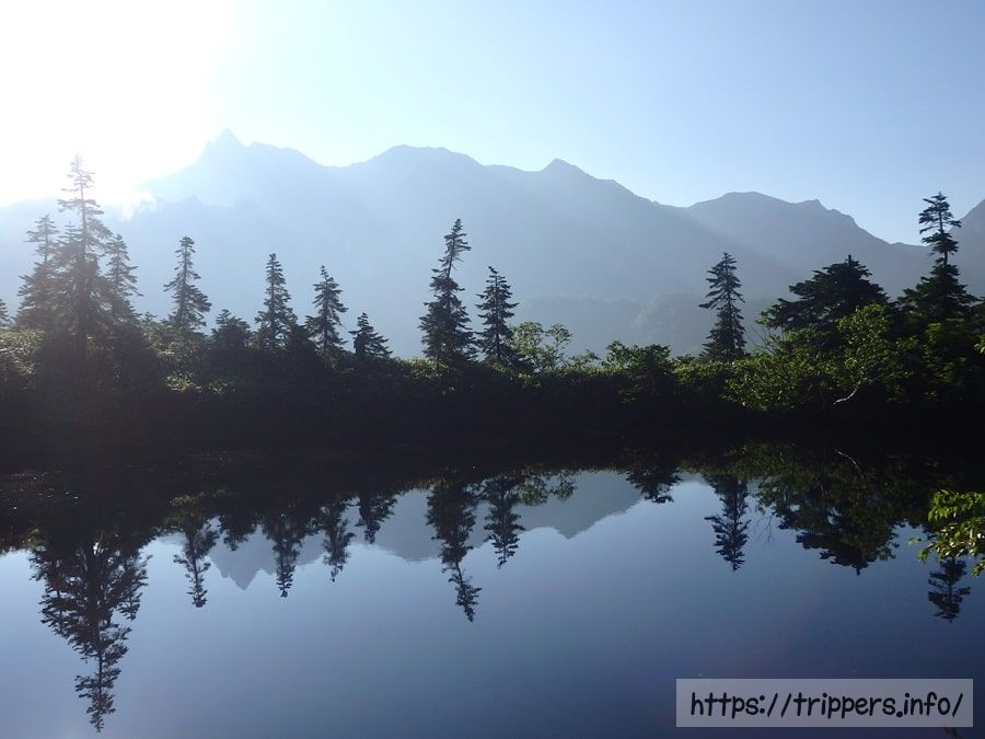 鏡池に再度立ち寄ると、風が朝食前よりも弱まっていました。日差しが強いですね。この3日間で日焼けした肌がヒリヒリしています。
