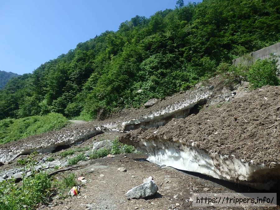 初日にここを通った時は雪で目の前が塞がれていましたが、数日でだいぶ融けたようです。