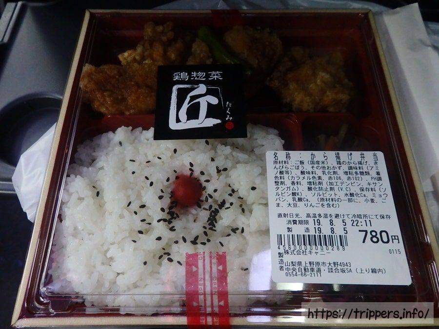 2回目のトイレ休憩で立ち寄った談合坂SAで弁当を購入しました。唐揚げが売りの鶏惣菜匠では、国産の鶏肉を使用した唐揚げが美味でした。