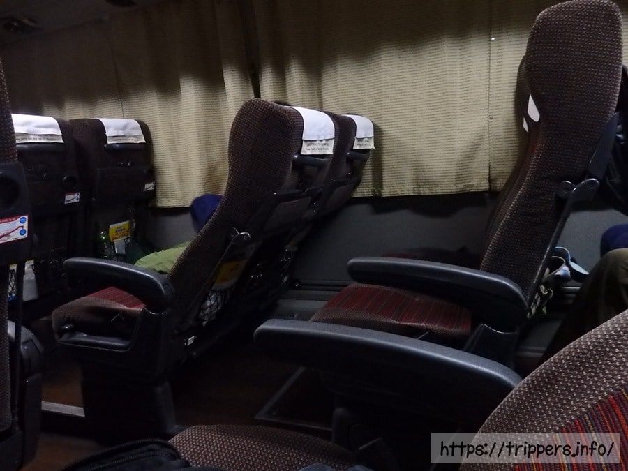 いざさわやか信州号に乗車すると満席だったはずなのに、ガラガラです。隣の座席も自由に使用でき、前と後ろの座席に人がいないので広々と使用できます。キャンセル料が100円なので7~8割の乗客がキャンセルしたようです。