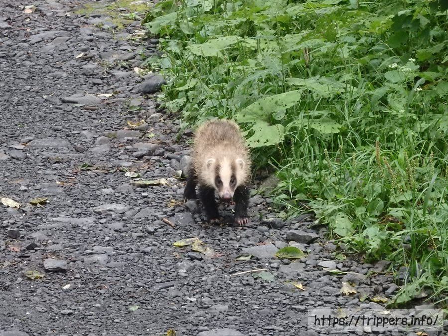 徳沢へ向けて歩いているとニホンアナグマを発見しました。ハクビシンと似ている動物で、初めて見ました。こちらが動かずじっとしていると、逃げる様子もなく近くまで来て通り過ぎていきました。