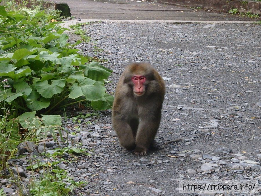次に出会ったのは上高地と言ったらよく出会う猿です。結構体格が大きいのですが、こちらを無視して通り過ぎていきます。