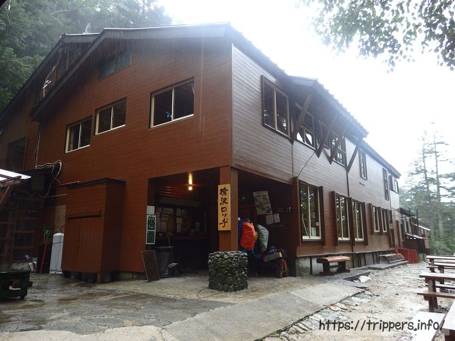槍沢ロッヂに到着しました。健脚者でなかったり、上高地入りの時間が遅い場合はここで1泊します。今回ここは、行きでは通過点であり、帰りの下山時に宿泊する予定です。