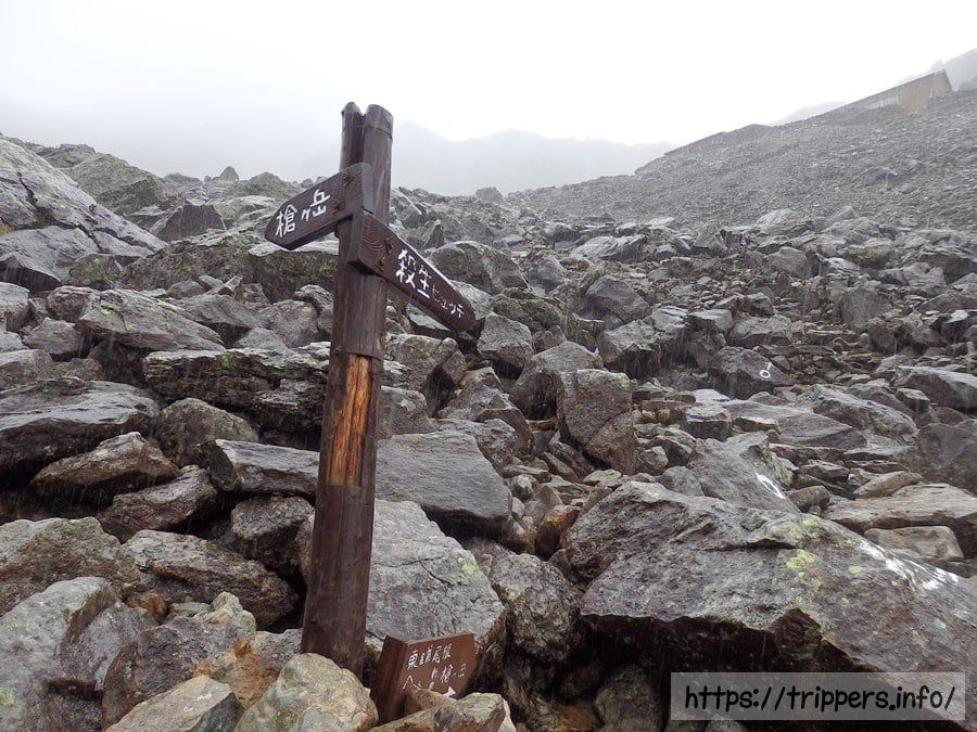 殺生ヒュッテの分岐までくれば槍ヶ岳山荘まであと少し。余談ですが、前日の宿泊者数は殺生ヒュッテで2名で貸切状態だったと宿泊した人が教えてくれました。槍ヶ岳山荘は5名だったそうです。南岳小屋は0人で売店含めた売り上げ自体が3日連続で0円とのこと。