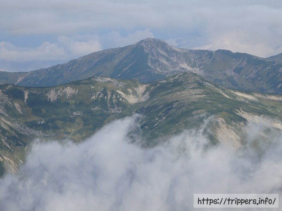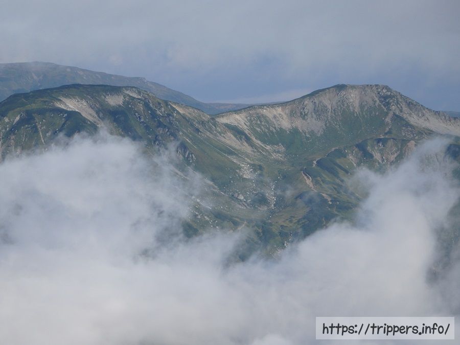 1か月前に登った鷲羽岳と水晶岳が見えました。登るとその山を認識できるようになるのは思い出があるからですね。