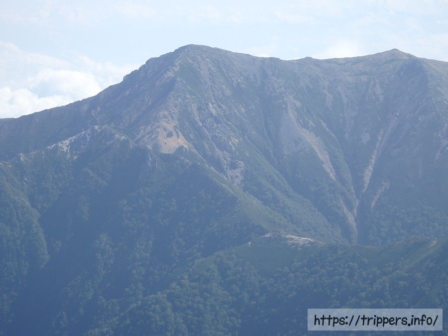 大天井岳が良く見えます。槍ヶ岳から南岳までの稜線は展望があるのに登山者が少なく、静かでのんびりとした山歩きができるため、好きな場所です。