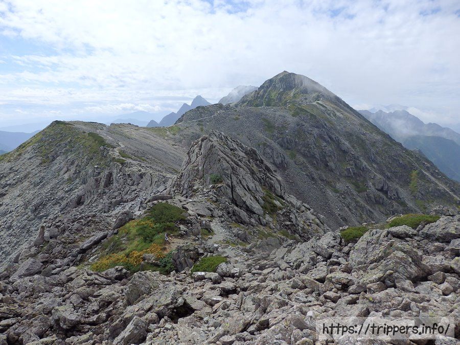 比較的空いていた山頂で景色を堪能したら、穂先を降りていきます。