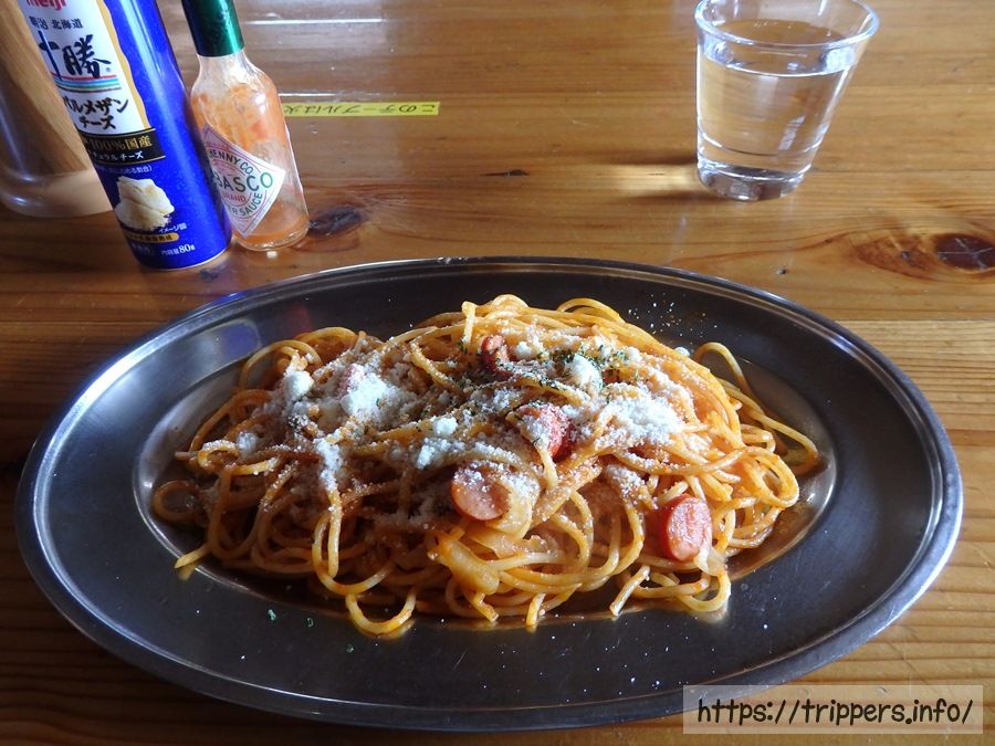 山小屋の昼食メニューっていうとカレーや牛丼、チャーハンと言った米系がありがちで、麺系はあってラーメンのイメージだったのでナポリタンは嬉しい。