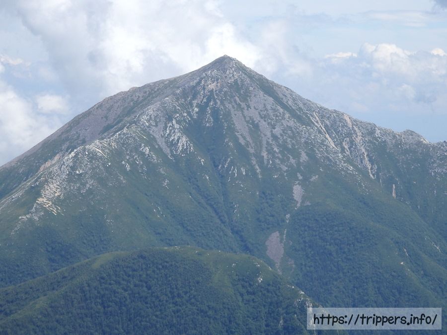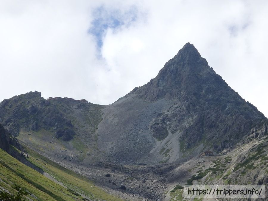 ここからだと常念岳が間近に大きく見えます。ピラミッドみたいな角度が萌え萌えもえP~。
