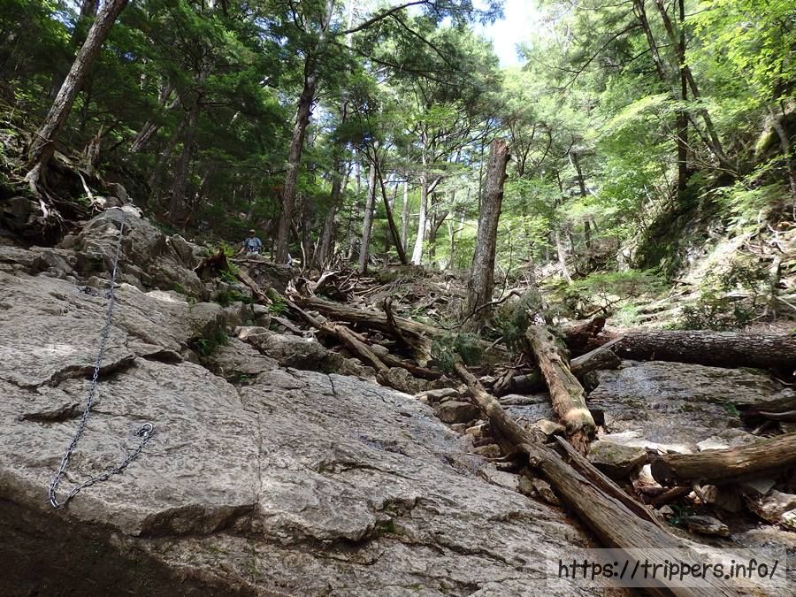 鎖場はまだまだ出てきます。鎖を使って登りながら思うのは、登山靴の底のグリップ力って偉大だなって事です。だからって過信は禁物だと認識しなおします。