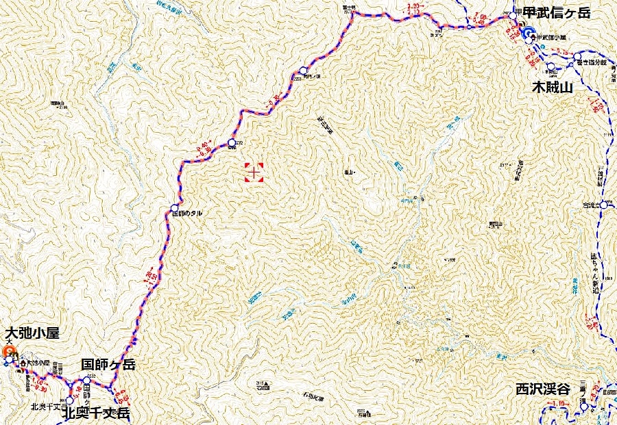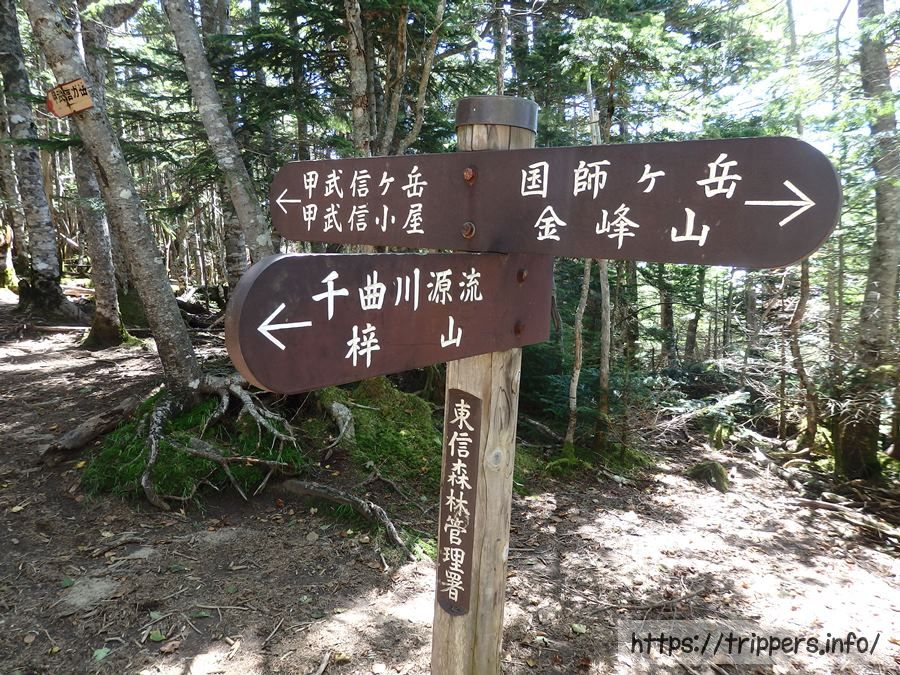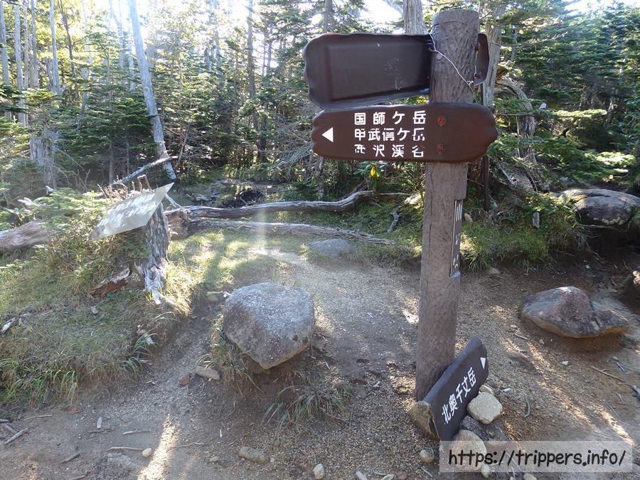 北奥千丈岳と国師ヶ岳の分岐点です。甲武信ヶ岳は国師ヶ岳の方にあるため、先に北奥千丈岳へ向かいます。