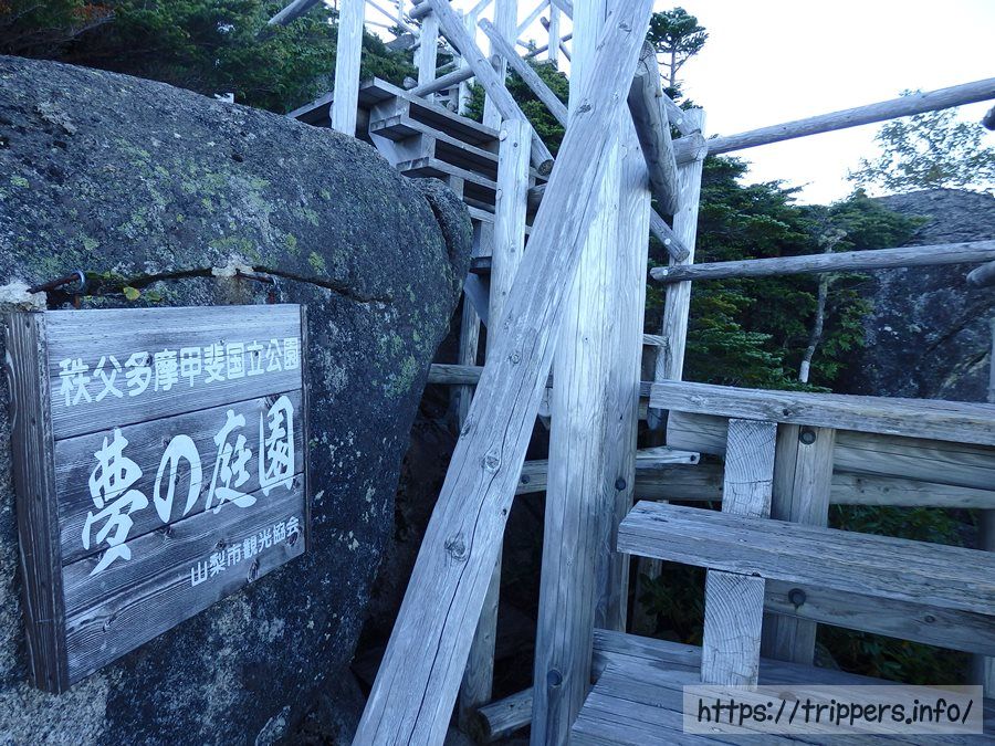 登山道はとても整備されており、段差の低い木の階段が続いて行きます。登り始めて10分ちょっとで夢の庭園と呼ばれる場所があるのですが、そこは展望台になっており、登山者でない観光客でも絶景を楽しめます。