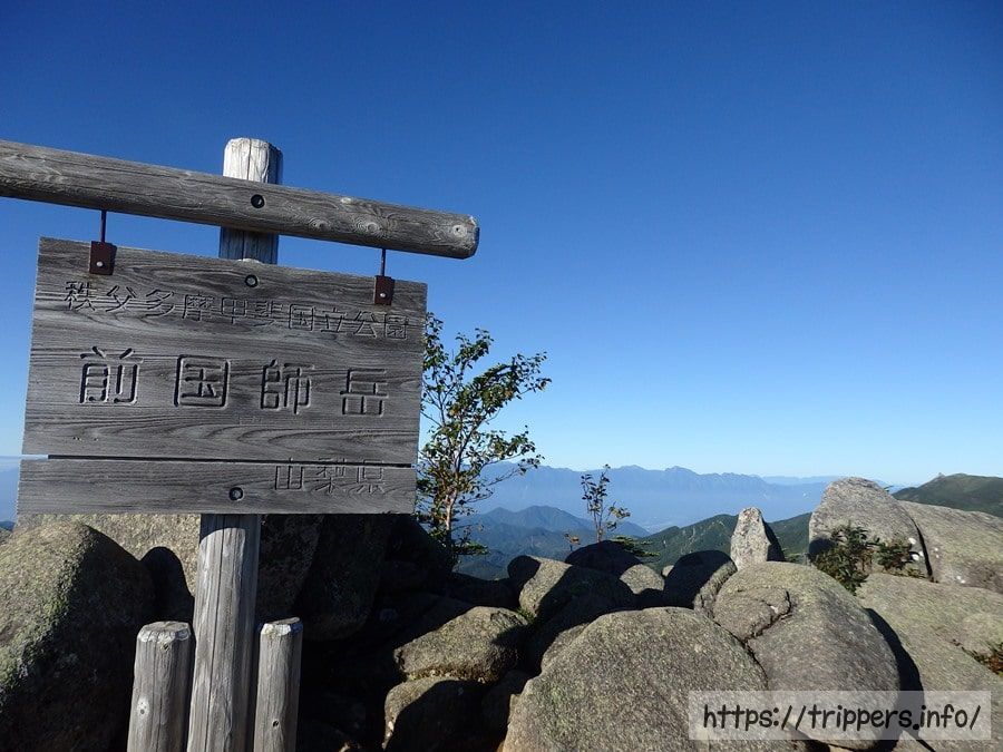 大弛峠から約1時間程で前国師ヶ岳・北奥千丈岳・国師ヶ岳の3つの頂に立つ事が出来ます。展望も良いため登山初心者に是非お勧めしたい山です。