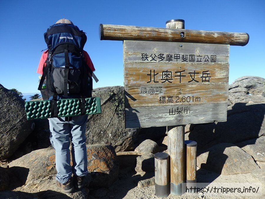 少し歩けば北奥千丈岳へ到着です。標高2,601mあり、奥秩父最高峰になっています。しかし国師ヶ岳の一角とも見られることから、知名度は決して高くないようです。私は今回の瑞牆山から甲武信ヶ岳への縦走計画を立てる以前は、国師ヶ岳さえも知りませんでした。
