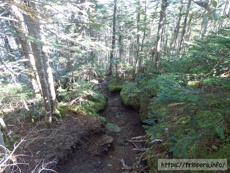 次は甲武信ヶ岳へ向かいます。樹林帯の中をどんどん標高を下げていきます。国師のタルと呼ばれる所まで、あとどれ位下れば済むのかって思う程、下り坂です。つまり下った分登らないといけないので、うんざりな予感。下りはラクラク小走りで通過していきました。