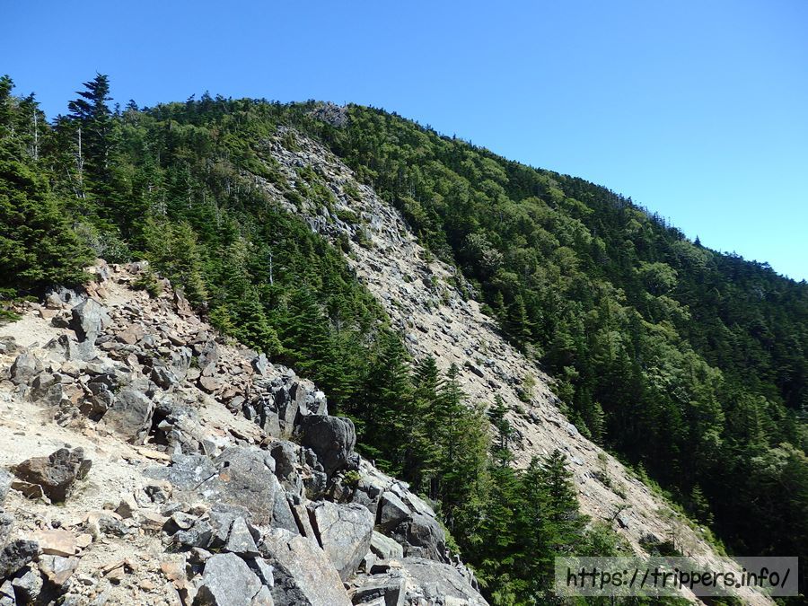 永遠と思わせるような登りが視界の奥まで続いてます。実際は、視界の奥の更にその奥まで登りが続いてました。国師ヶ岳からこれでもかっていう位、標高を下げた結果ですね。
