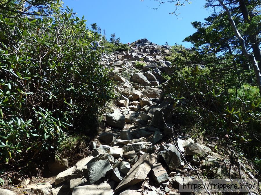 ようやく甲武信ヶ岳の山頂が目の前に見えてきました。あともうひと頑張り。