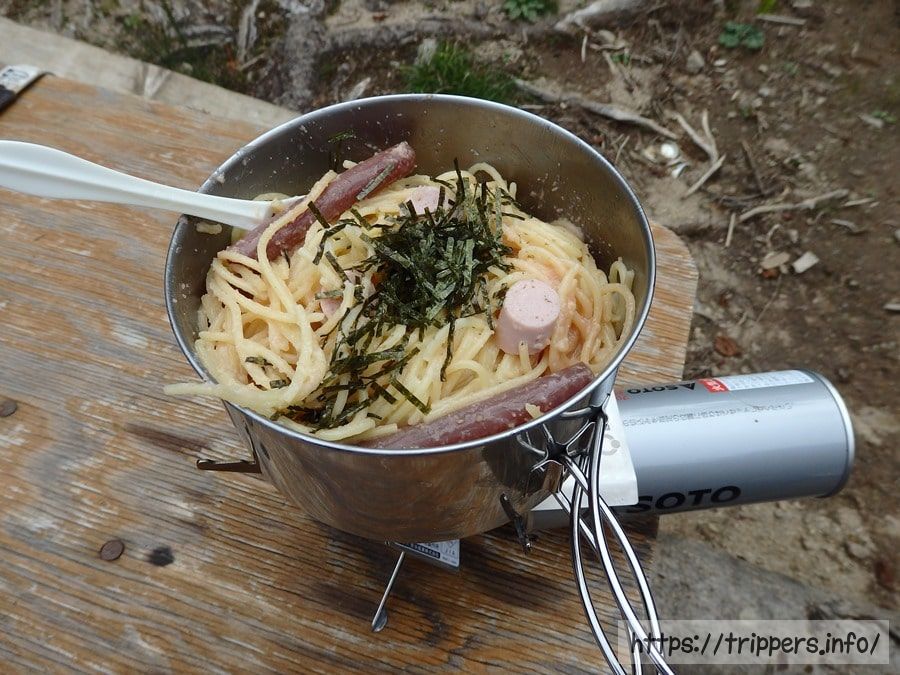 昼食はたらこスパゲティーです。麺の量が多かったため、ソースが足りず薄味になってしまいました。ゆで汁を捨てられないので、少ない水で麺を茹でたらぬめりが麺にへばりついてしまい、不味かったです。鍋の底も焦げてしまうはめにもなりました。