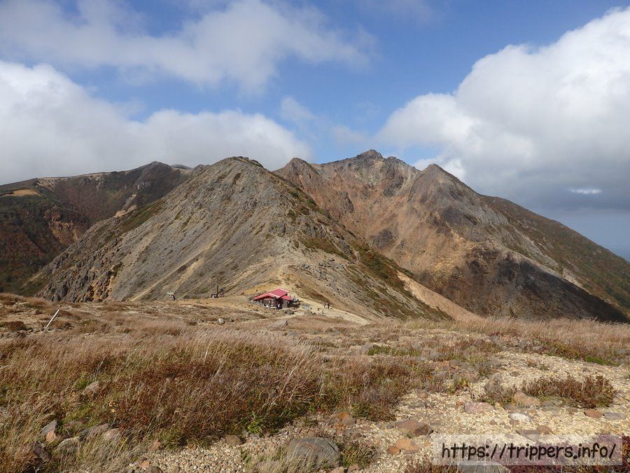 東京駅発(新幹線やまびこ201号) 那須塩原駅着 那須塩原駅発 那須ロープウェイ着 登山開始 県営駐車場 峰ノ茶屋跡避難小屋 朝日岳分岐 朝日岳 朝日岳分岐 熊見曽根分岐 清水平 中ノ大倉尾根分岐 |