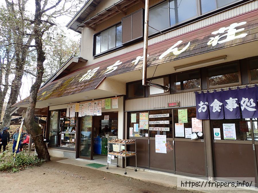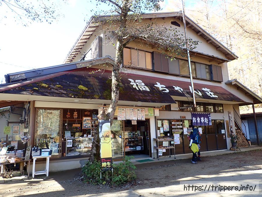 登山開始からゆっくり歩いて20分程で福ちゃん荘に到着しました。福ちゃん荘は食堂や売店、お風呂付の宿泊施設になっています。テント場もあるので、初めてのテントデビューにも良いですね。