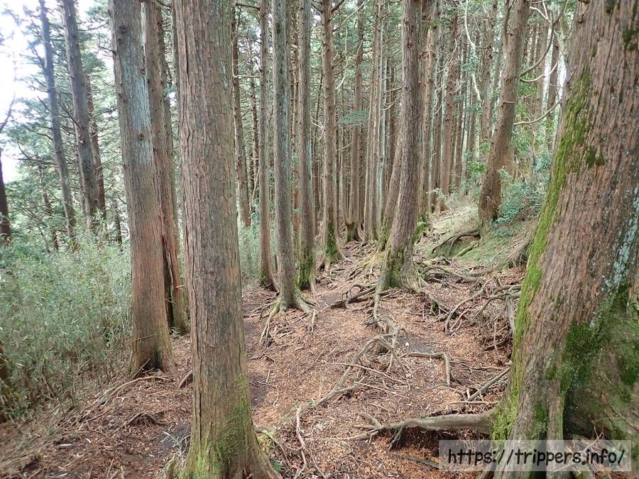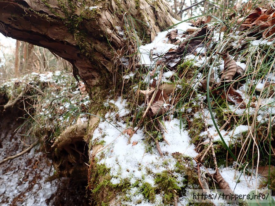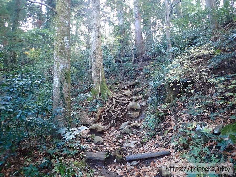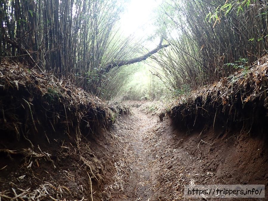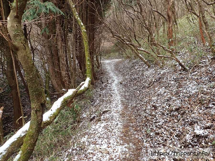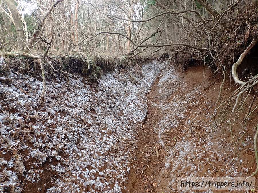 濡れたらとても滑りやすい場所を進んでいきます。登山道には展望はまだなく、季節は冬なので花もない場所です。登山が好きじゃない人から見たらなぜこんな場所を歩くのは分からないと思います。私も特に魅力は感じません。今はただ歩いて山頂の景色を楽しみにしたいと思います。