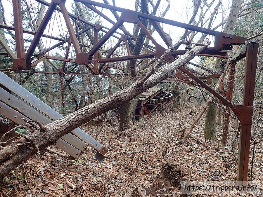 リフトの残骸を通り過ぎます。木材か何か運んでいたのでしょうか。