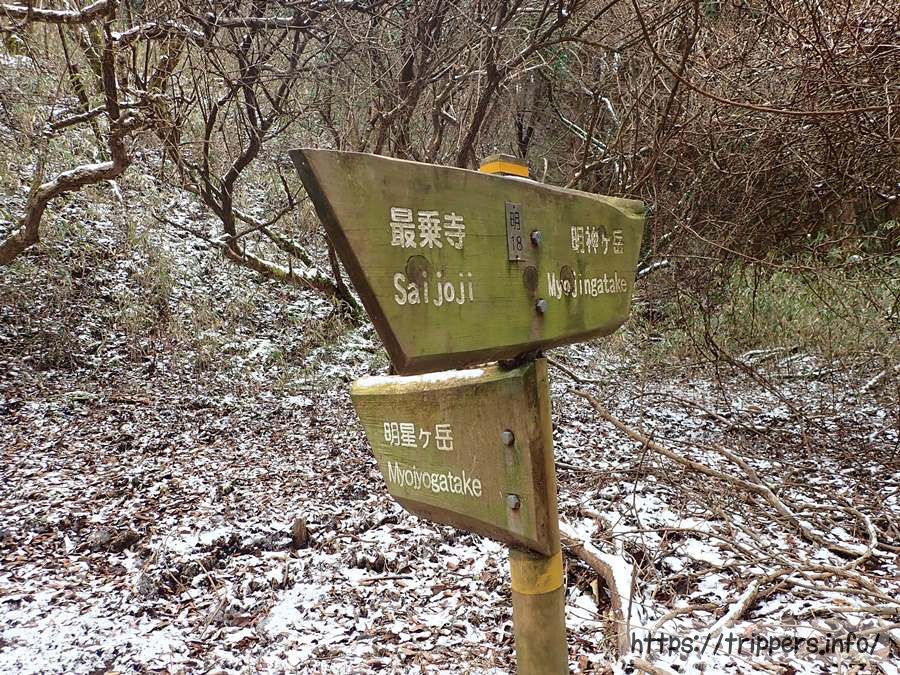 明神ヶ岳と明星ヶ岳の分岐点に来ました。明神ヶ岳の方へ向かいます。