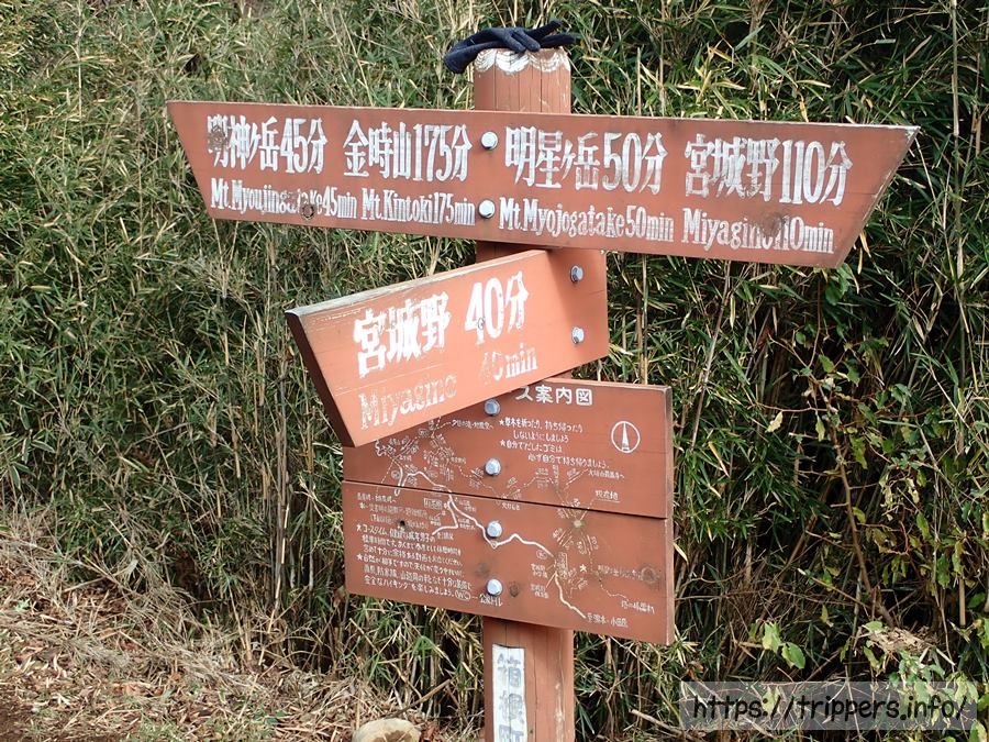 来た道を少し戻り、分岐点から宮城野へ下山します。明星ヶ岳の先にも登山道が続いており、そっちへ進むと塔の峰を経由して箱根湯本へ下山出来ます。