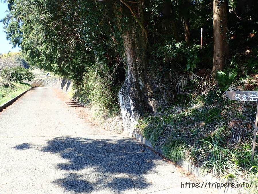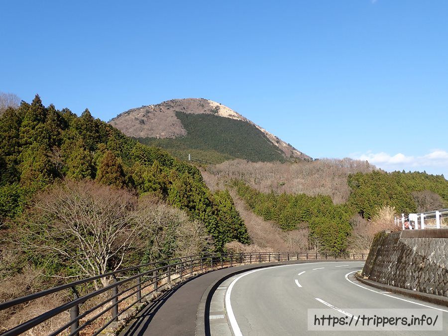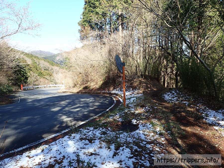 林道が終了すると車道の脇に歩道が出現します。目の前に見える山が今日登った矢倉岳です。結構標高を下げてきました。