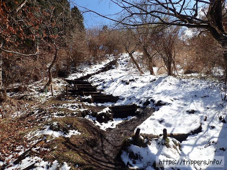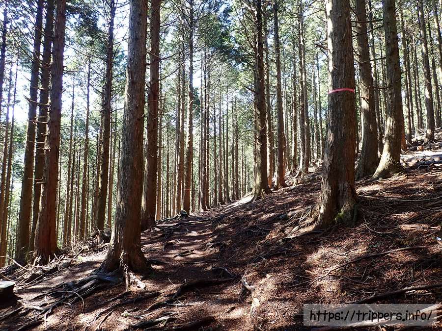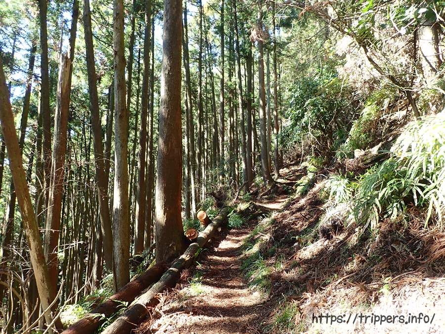 落葉樹の木々の隙間から見える景色からは標高が上がっているのが分かります。山頂まではもう少しです。