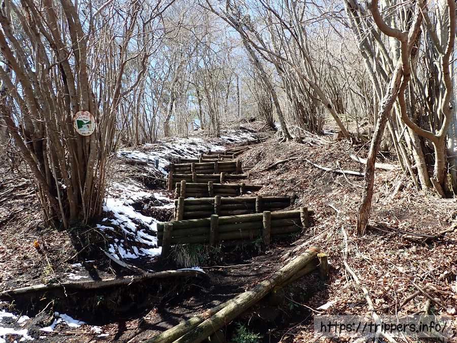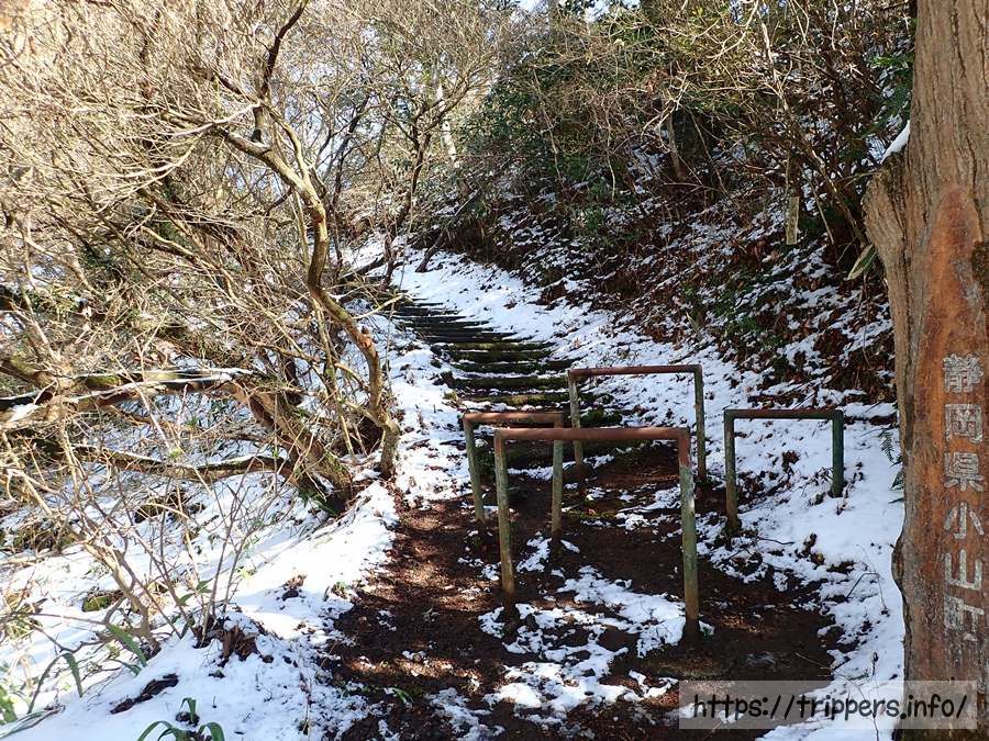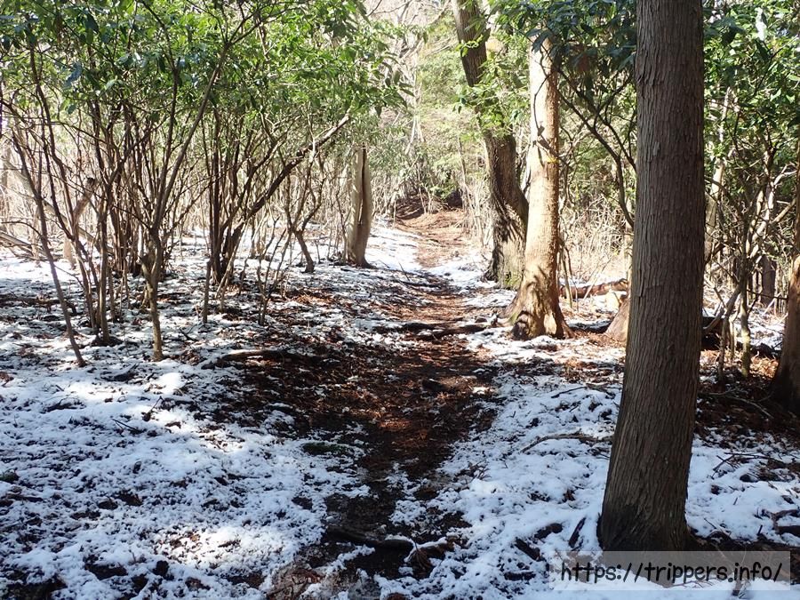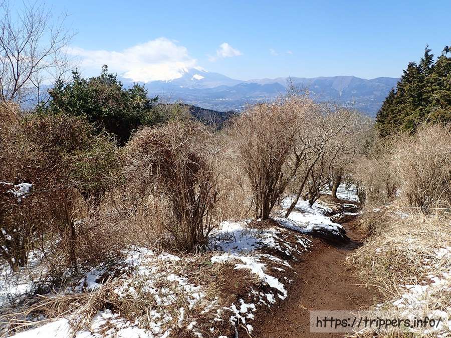 途中から残雪がある場所も出てくるようになりました。矢倉岳は丹沢山塊と箱根の間に位置していますが丹沢の山でもなければ、箱根の外輪山にも属していない山です。足柄峠から1時間半程で箱根の外輪山である金時山に行く事も出来ます。