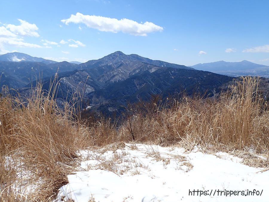 中央に見える一番高い山が矢倉岳のようです。山頂の標高は870mと低いため、簡単に登れてしまいそうです。山頂までの登りが680mで下りが58mとアップダウンもなく登りやすい山でした。