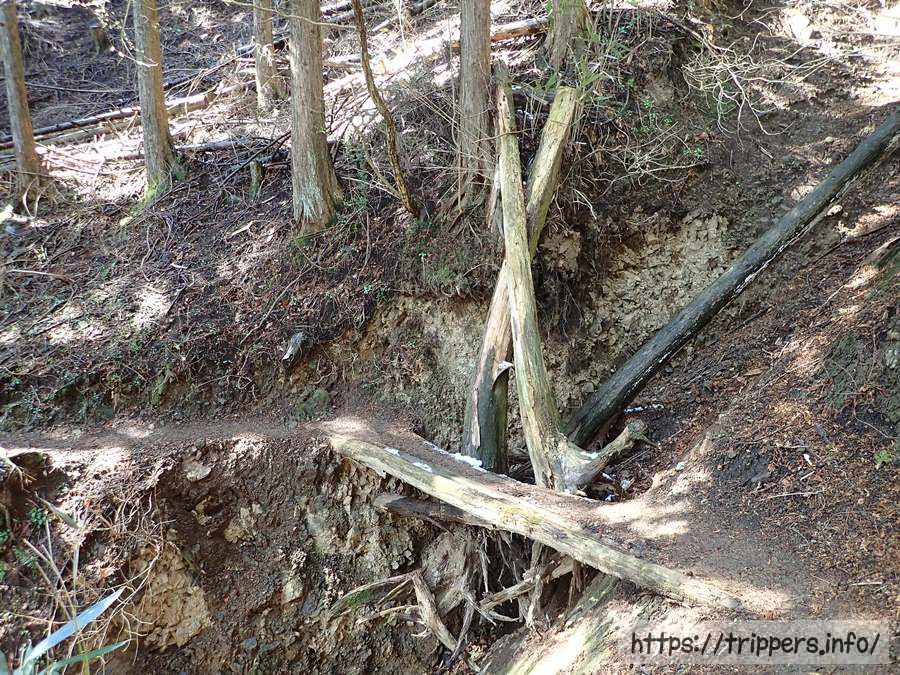 金網柵からは登山道になります。金網柵は茶畑からイノシシを守るためのようですね。土を掘り返したり茶の樹に体をこすりつけて茶葉や樹を痛めたりと、茶葉を食べなくても害獣になってしまうんですね。