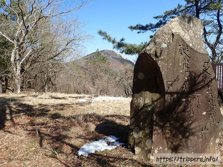 和歌が書かれた石碑の目の前には矢倉岳の姿があります。ここよりも、すぐ側にある足柄明神からの方が矢倉岳が良く見えます。