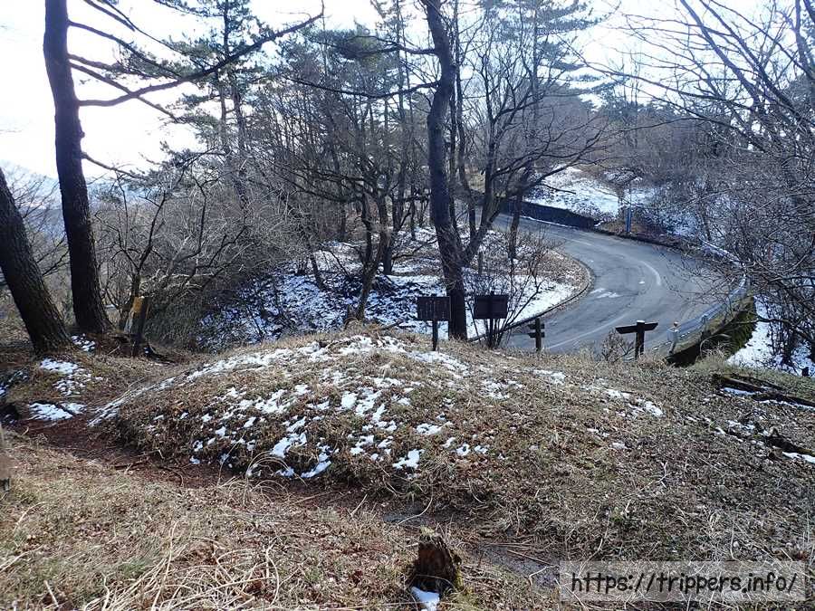 車道の脇に沿って古道はあり、所々で車道を渡る必要がありました。