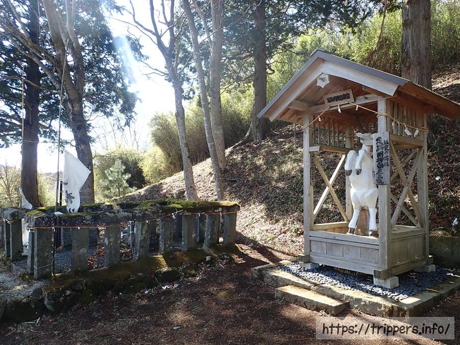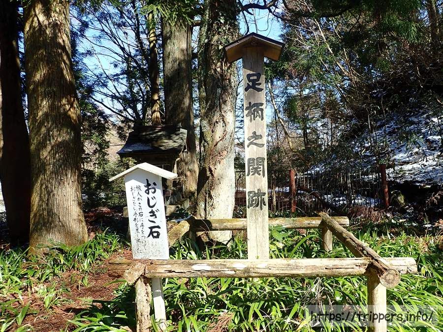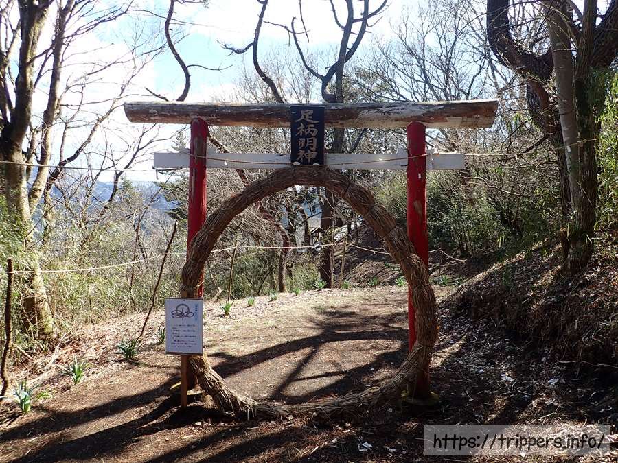 足柄明神は神社跡であり、日本武尊(ヤマトタケル)が東征する時、明神ヶ岳から足柄峠を越えようとして道に迷い、白鹿に導かれて無事に峠を越えたといい、これを神霊の導きであるとして祀ったものらしいです。