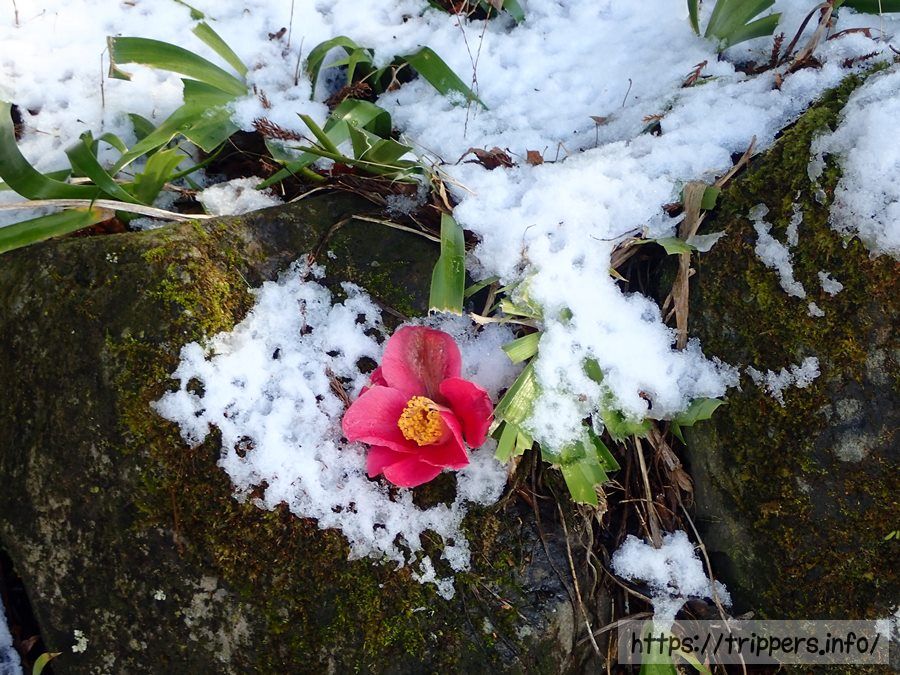 椿の花がなんとも風情な感じで地面に落ちていました。