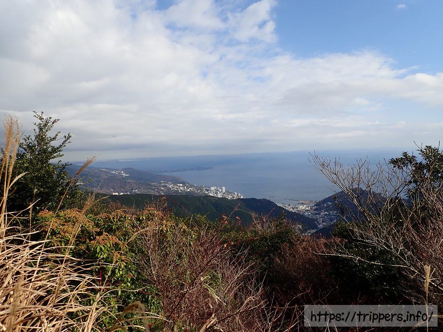 山道から相模湾が見えます。山頂まではもうすぐです。片道2時間で登れてしまうので、初心者向けですが思わぬ難路もこの先あります。