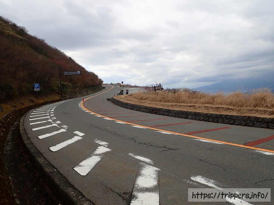 伊豆スカイラインまで来るとスリップする場所はもうありません。車専用有料道路を横断しないといけないので、スピードを出した車に注意して渡ります。
