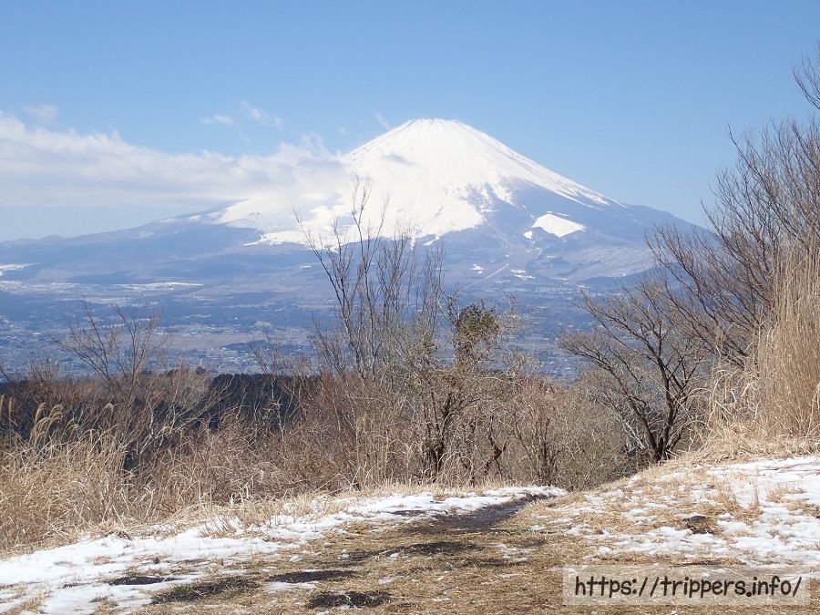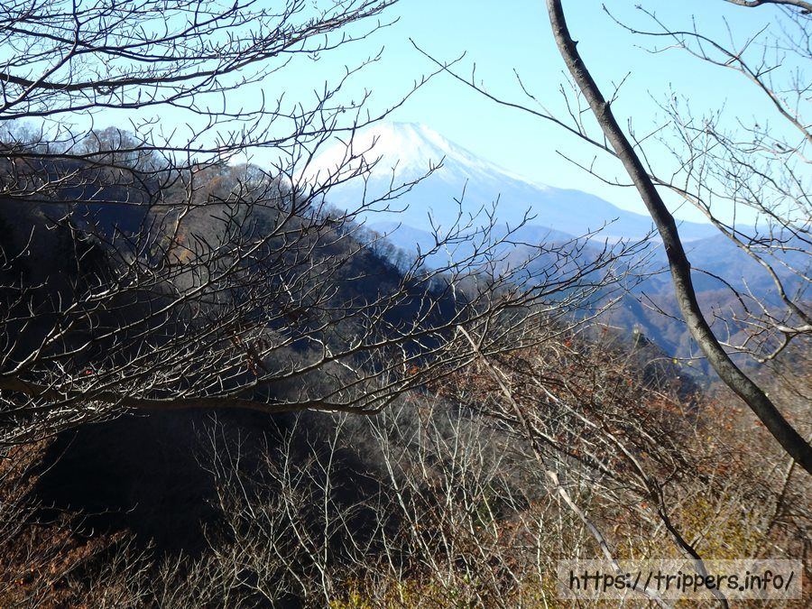木々の隙間からは丹沢の山が見えます。この時は何の山か知りませんでしたが、一番右の山頂は丹沢山で一番左の山頂は蛭ヶ岳だと思います。