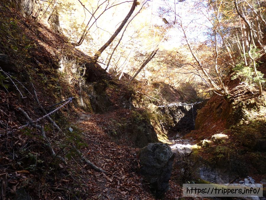 幾つもの鎖場が登場してきます。中には高低差が20~30m程ある鎖場も1つあり、スリルを感じます。