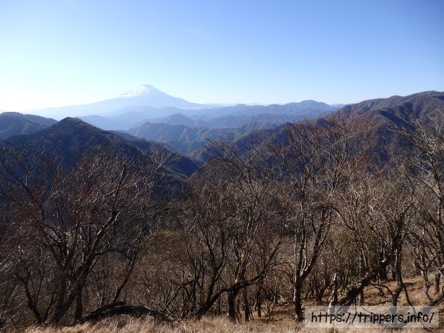 丹沢って意外に奥深い山のようです。時刻は午後ですが、幸運にも富士山がはっきり見えました。鍋割山の山頂からもほぼ同じ景色が見れます。