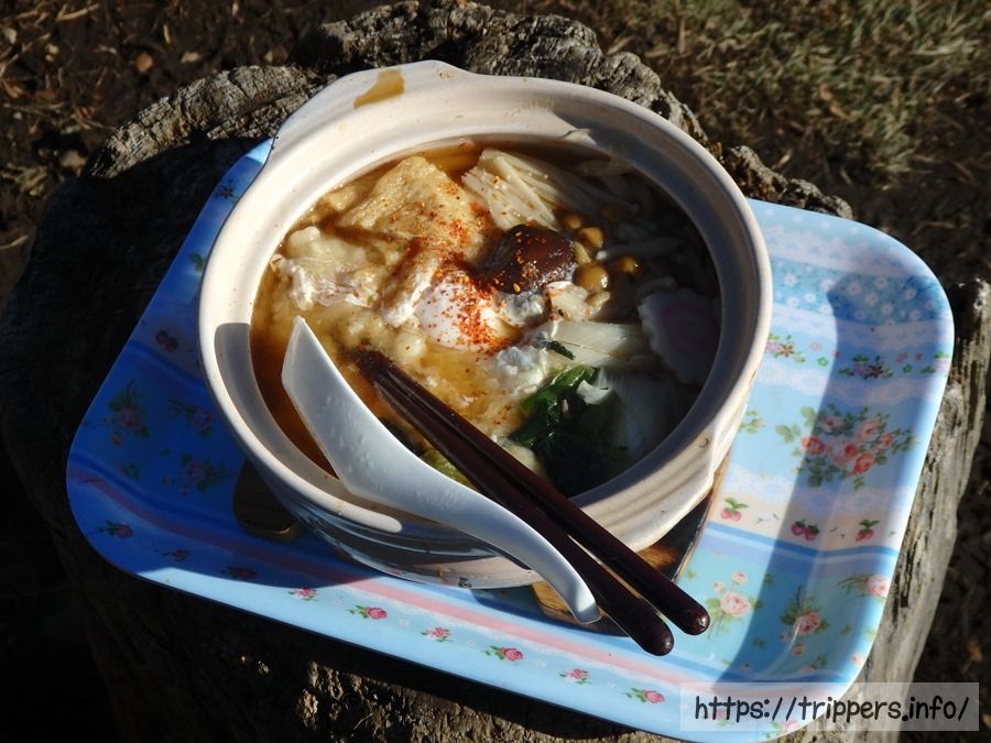 山頂に到着しました。鍋割山荘で鍋焼きうどんを注文します。お値段は1000円です。結構な人気のようで、注文待ちの行列ができる時もあるようです。そのためか1500円に値上がりしてしまう事になります。